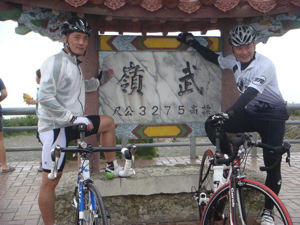 8/23 周大炮&罐頭兩兄弟攻頂合照.(廬山--武嶺) 騎上單車之最高境界,全台公路最高點---武嶺. (後段 昆陽休息站至武嶺 ,人稱-天堂路!是最艱難的一段,恭喜你們完成了!) 我們其他三台汽車則成了後援車,負責補給水,還有載他們下山囉!